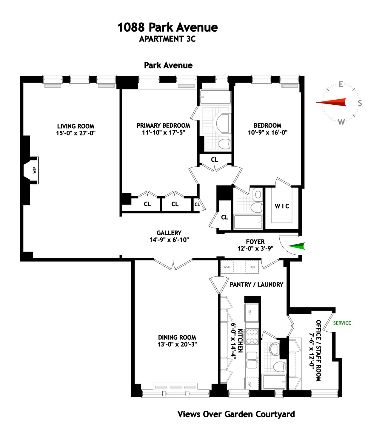 Engaging and enchanting views from every room, 3C is lovely by day and romantic by night. 1088’s beautiful and private large landscaped garden to the west and Park Avenue tree tops to the east brings the out-of-doors into this architecturally distinguished home.