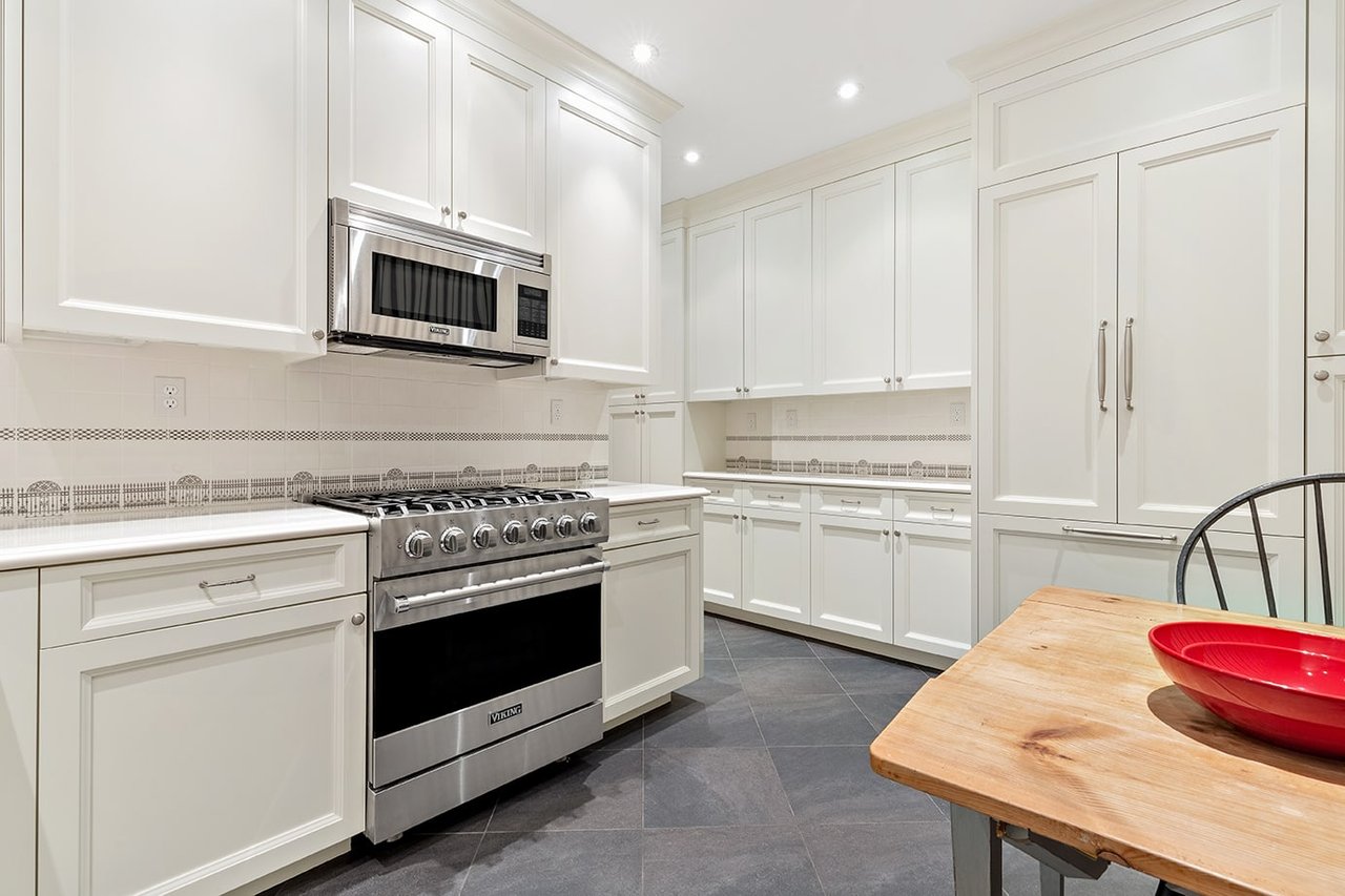 The kitchen is ideal and was developed with no expense spared. Recessed lighting, high-end appliances, a large pantry and ready-to-serve wet bar: check, check, check. Off the pantry there is a full-size washer and dryer (vented) in addition to a staff room with its own full bath.