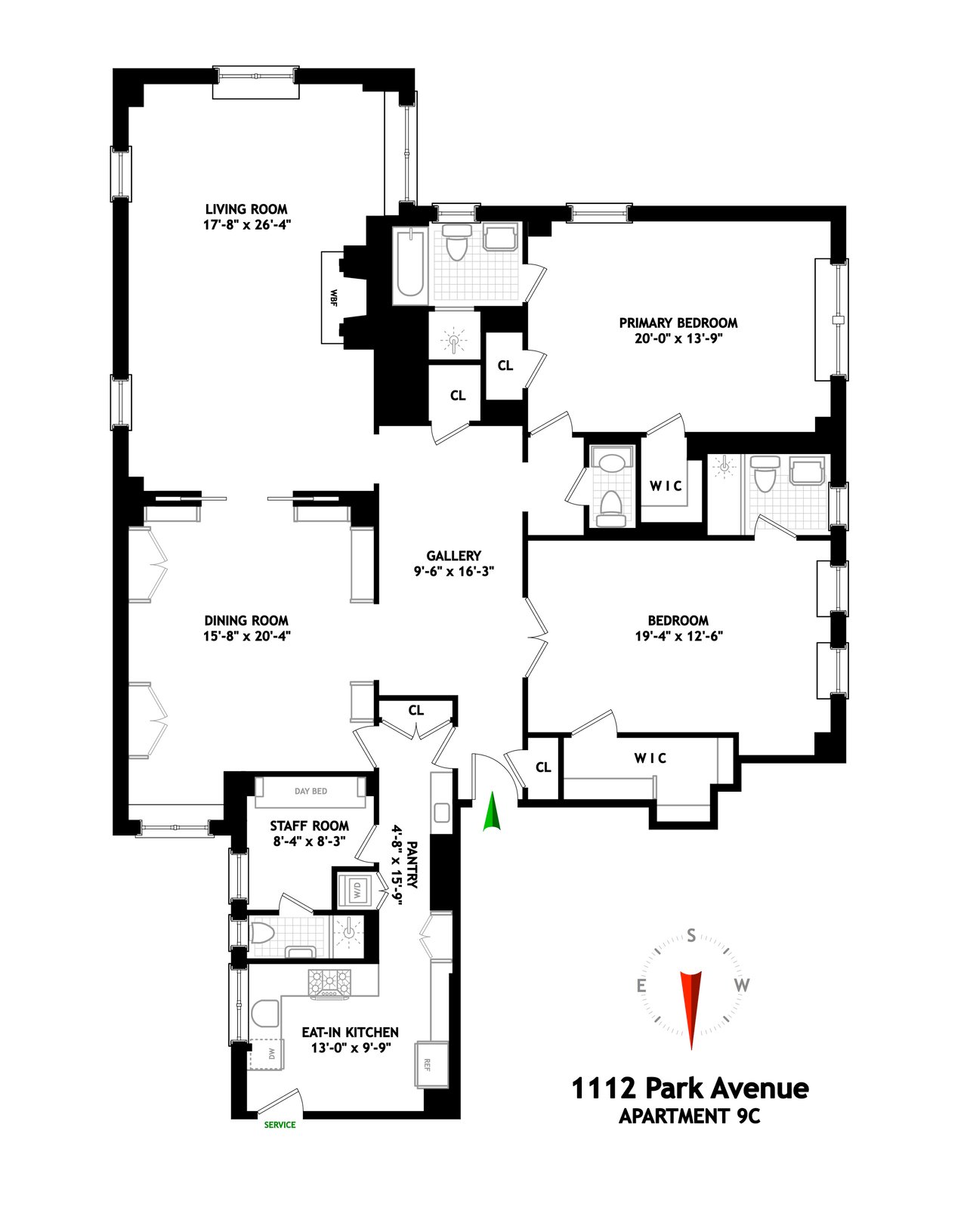 In impeccable condition, 9C has been perfectly developed to create a beautiful home with an ideal layout for all living and entertaining needs. Unique to the apartment are the 3 baths plus powder room, all superbly renovated. With a handsome kitchen, new windows, doorjambs, crown moldings, superb built-ins, AC, and an electrical upgrade there is nothing further to do.