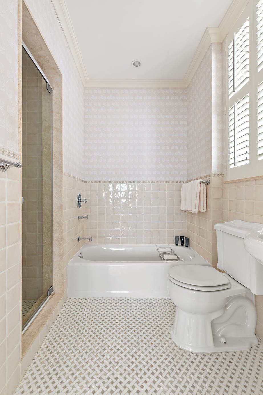 Both bedrooms are unusually large with abundant closet space and are open to the west. They receive ample light throughout the day. The second bedroom has pocket doors which allow it to function as a library and has an ensuite bath. The principal bedroom’s bath is unusually big with a separate stall shower and soaking tub.