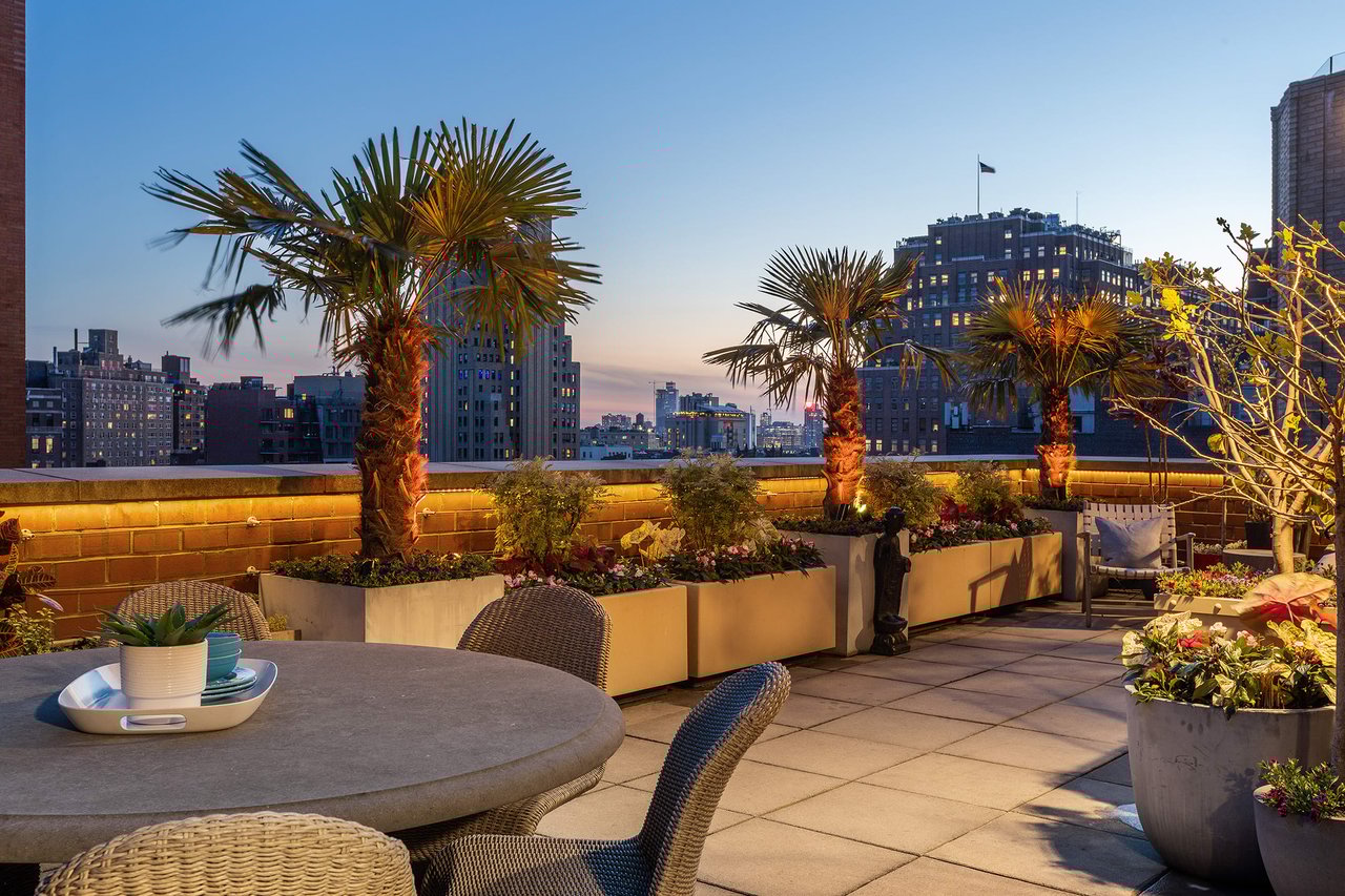 Fabulous for indoor/outdoor living and entertaining, this unique penthouse offers unequaled respite from busy New York City life with over 1,000sf of private outdoor space. The lush south-facing terrace is a true oasis that transforms into a glamorous space for parties. The north-facing terrace lends itself to quiet enjoyment.