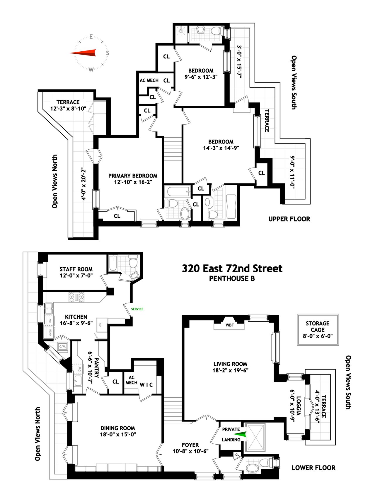 With super big views south to midtown, light streams in the oversized windows at all hours of the day. The high ceilings, large rooms, and separation of space makes this unusual duplex feel like a townhouse in the sky. PHB has terraces on both the north and south sides and en suite bathrooms for every bedroom. Each bedroom offers privacy and dramatic views with two primary bedrooms to choose from.