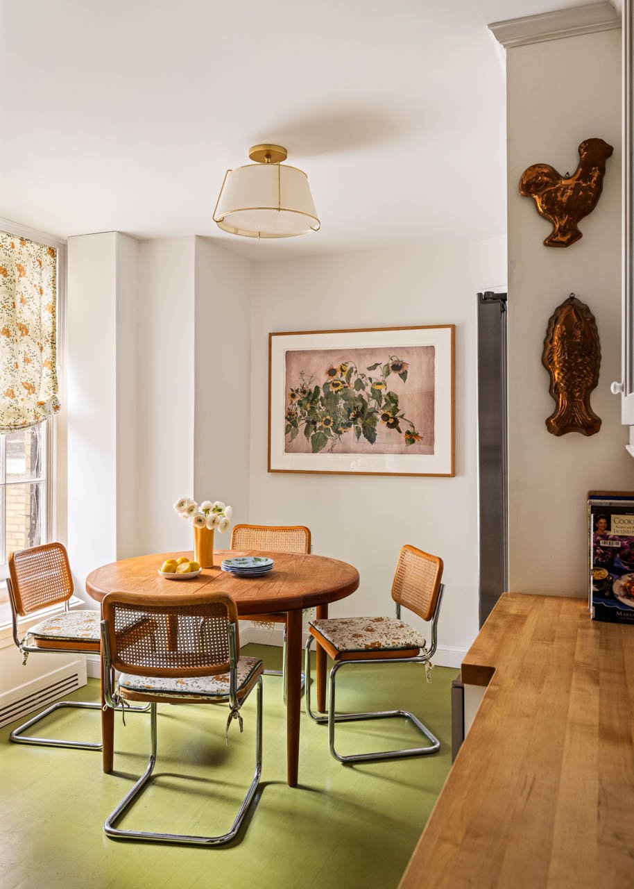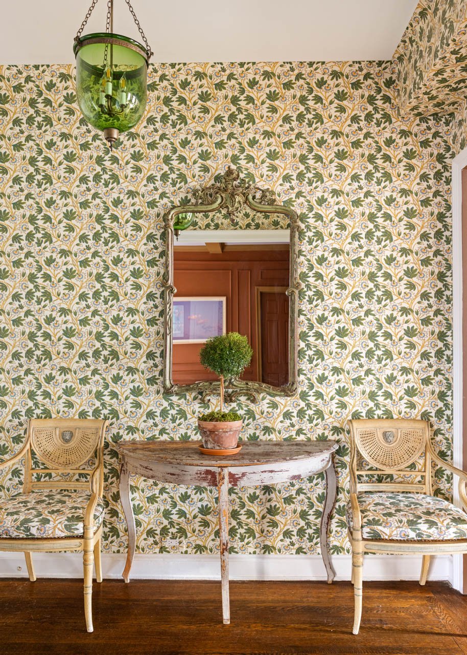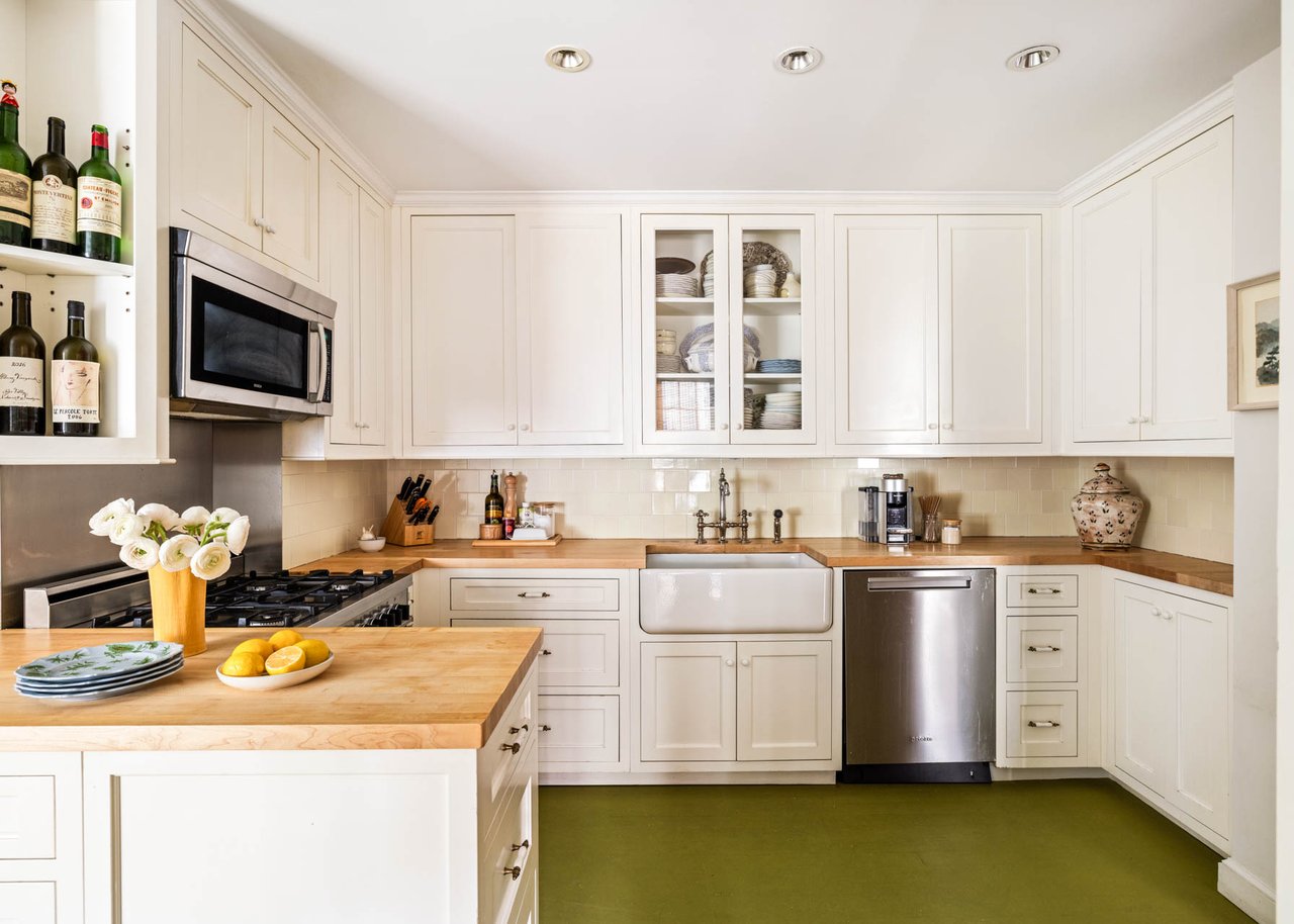 The wood-paneled living room is truly grand—three large, windowed exposures frame open sky and all-day sunlight, while a wood-burning fireplace anchors the room with warmth and timeless style. The enchanting square dining room easily accommodates dinner parties of up to sixteen, creating a seamless setting for gatherings of any scale.