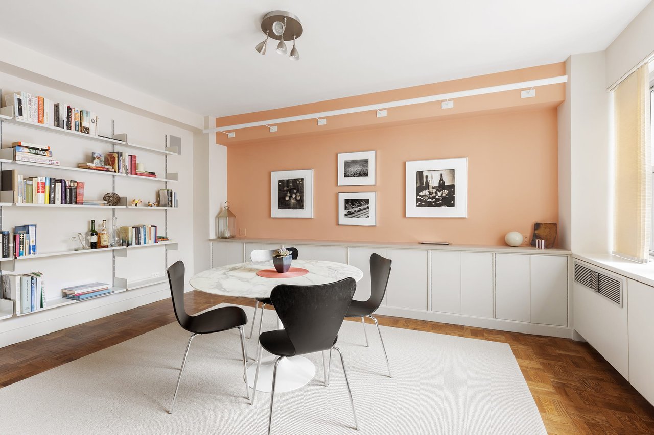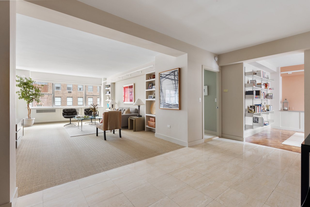 Currently configured with a guest room/library, living room, large primary bedroom plus dining room, the apartment offers a flexible layout with opportunities to meet a buyer's growing needs or appealing to empty-nesters. Should one desire, the dining room can be smartly converted to become a third bedroom.