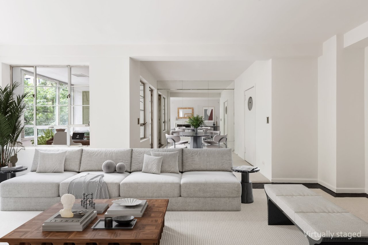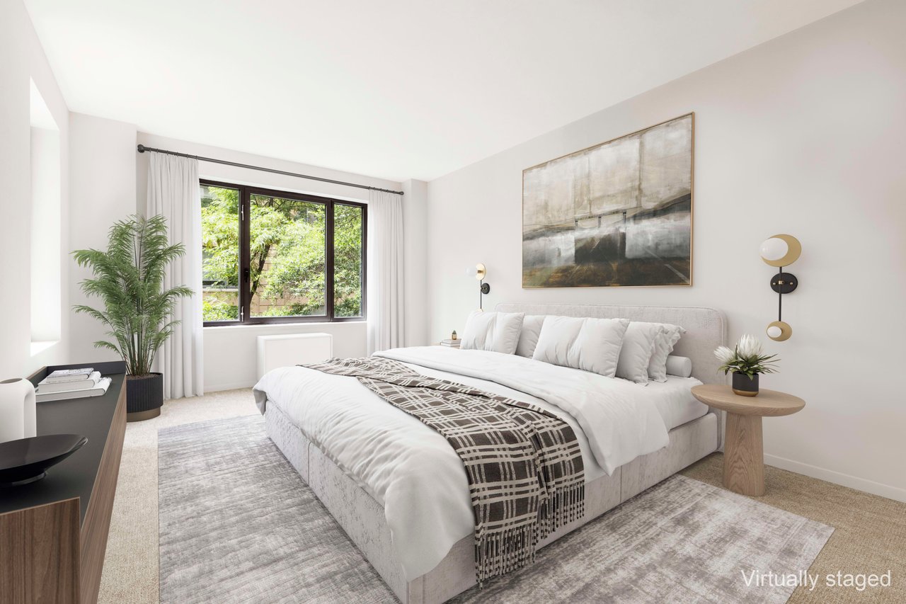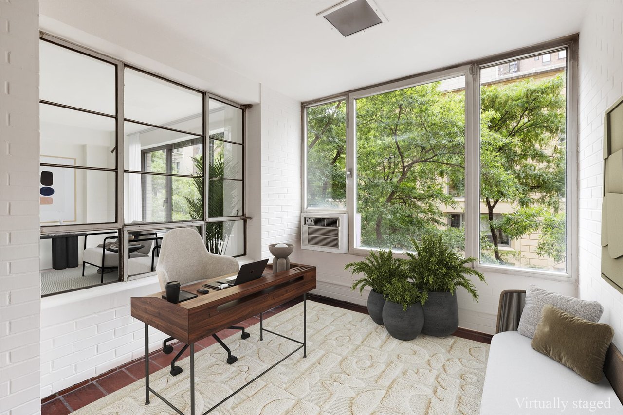Sun-filled 3E faces south with views through green tree tops to 87th Street and the Park Avenue Synagogue, a low architecturally attractive building. The 4.5 room apartment has a large dining area plus office and the potential for an enormous bath and installation of a washer/dryer. With over an approximate 1,100 sqft, this expansive one bedroom has high 9' ceilings, enormous windows, and beautifully shaped rooms.