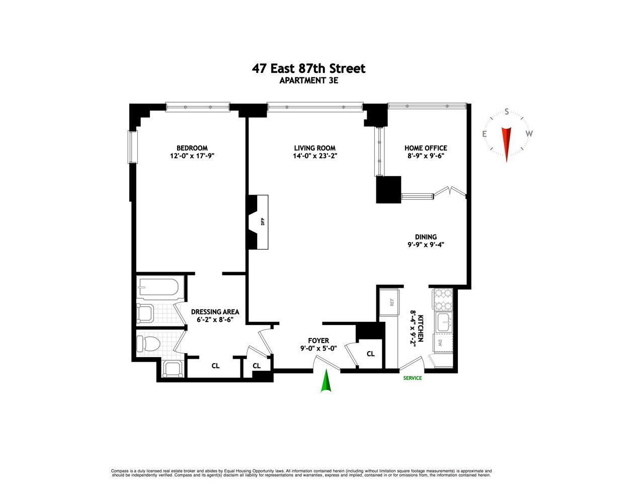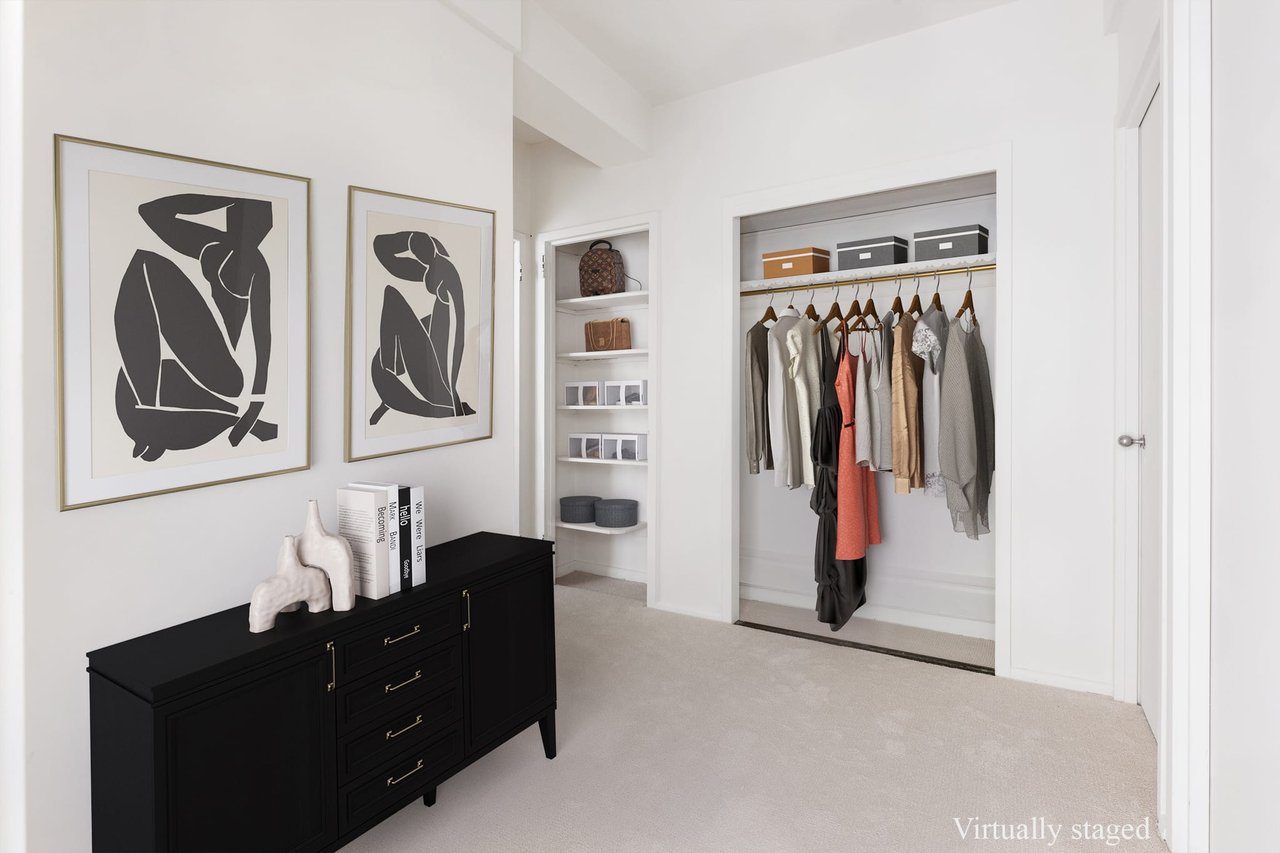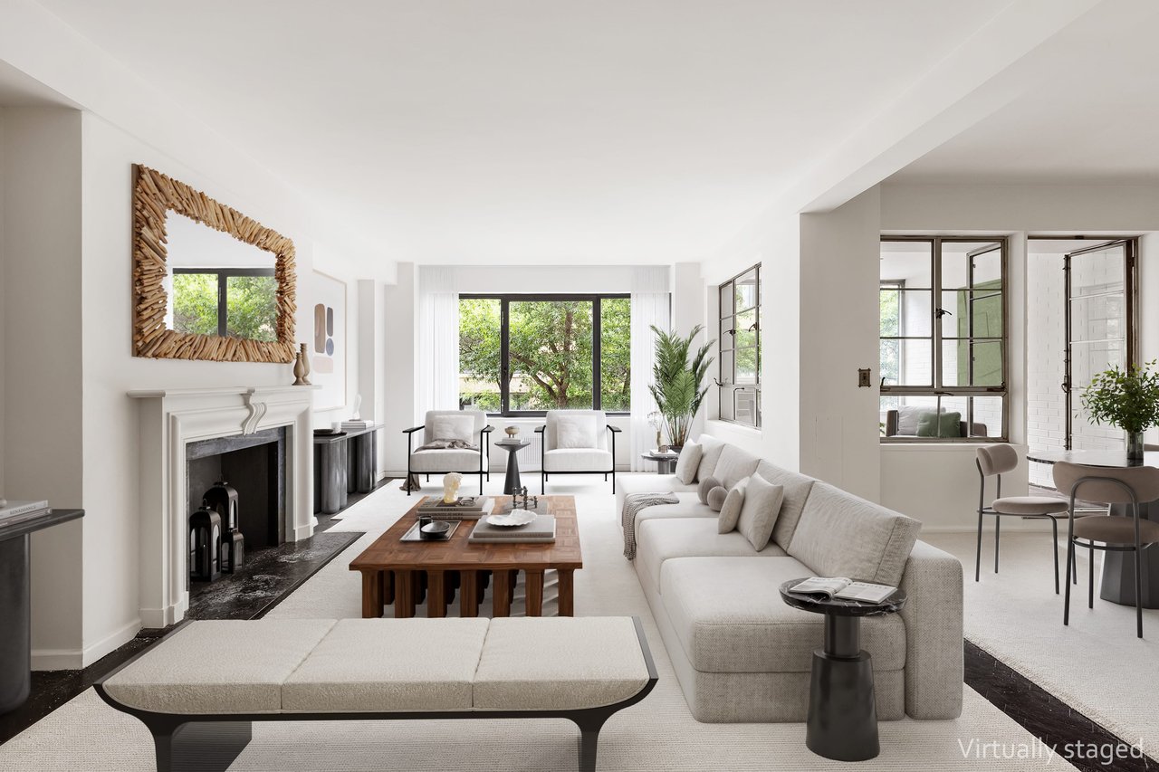 Sun-filled 3E faces south with views through green tree tops to 87th Street and the Park Avenue Synagogue, a low architecturally attractive building. The 4.5 room apartment has a large dining area plus office and the potential for an enormous bath and installation of a washer/dryer. With over an approximate 1,100 sqft, this expansive one bedroom has high 9' ceilings, enormous windows, and beautifully shaped rooms.